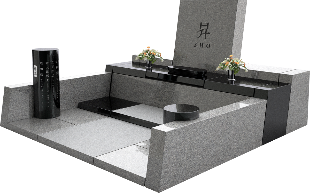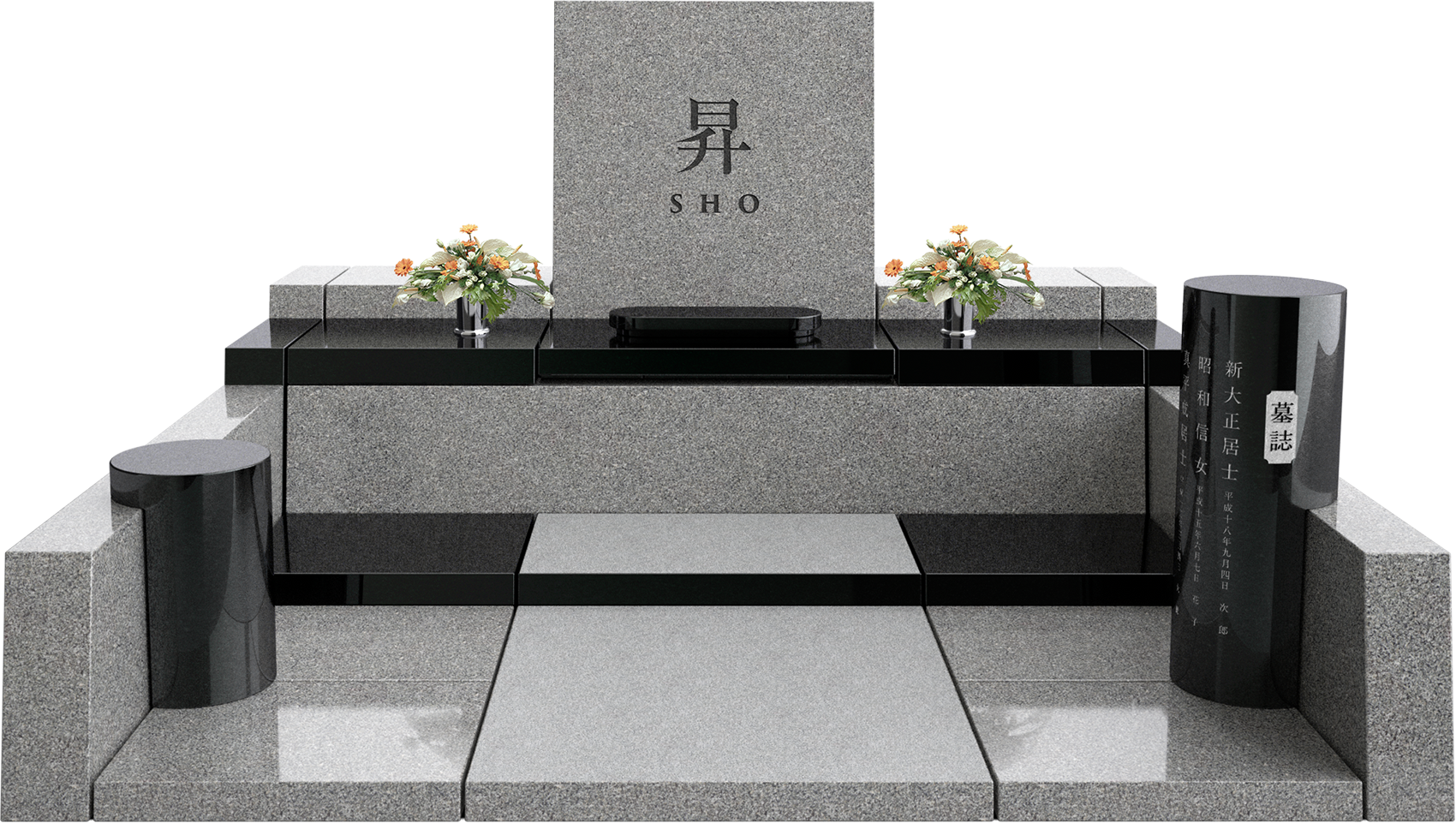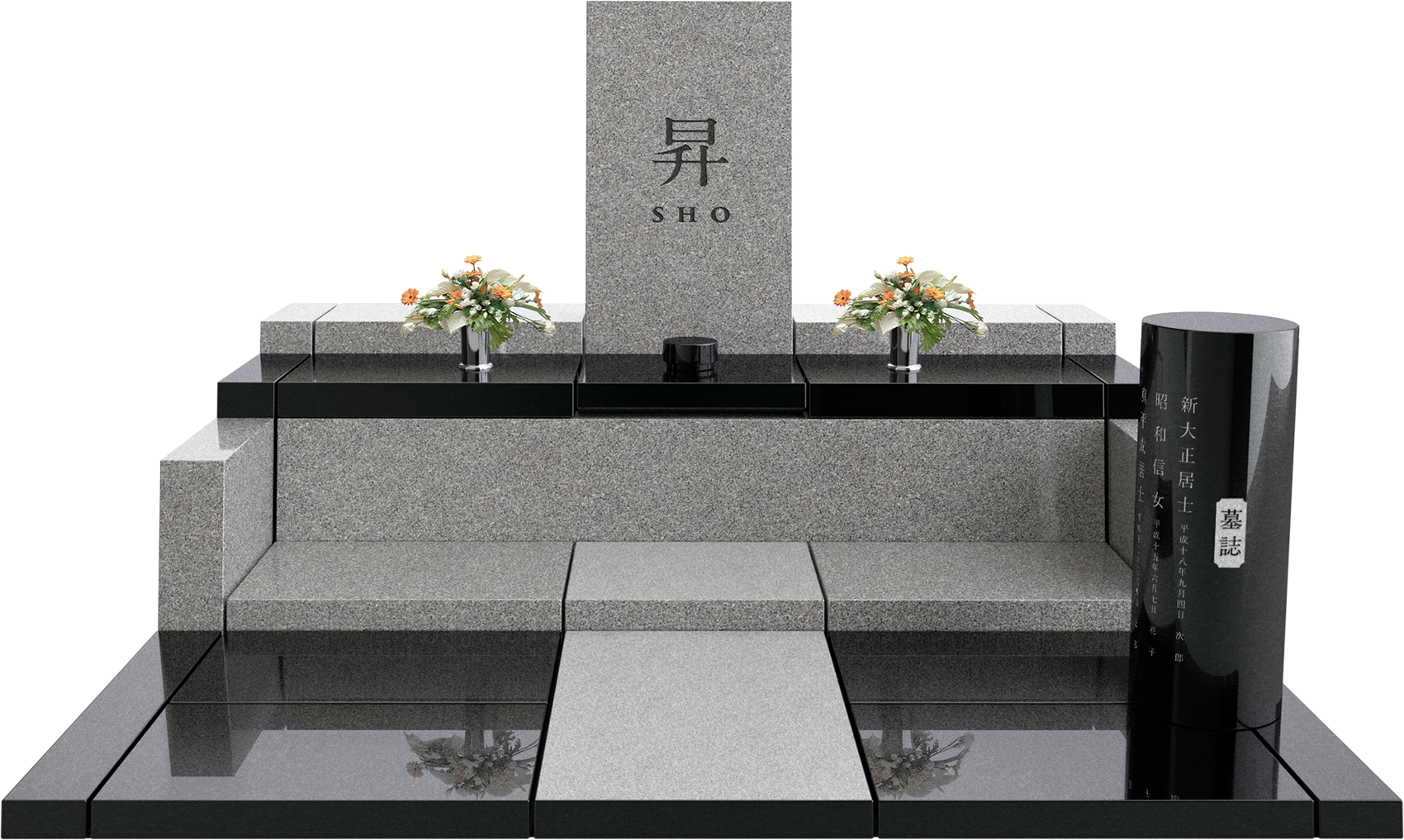 美しい階段状の構成と、安定感のある平面が祈りを受け止める墓石「Sho - ni」。