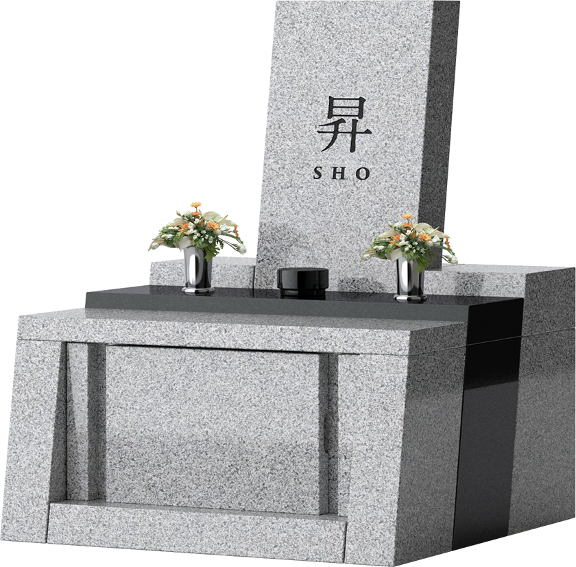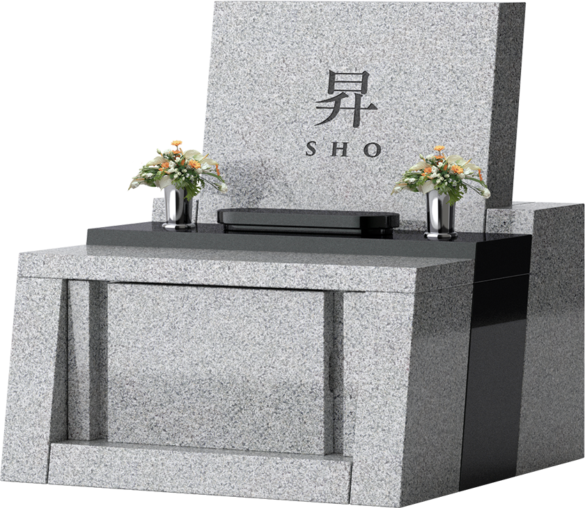 美しい階段状の構成と、全体に後傾した斜めの面が印象的な墓石「Sho - ichi」。
