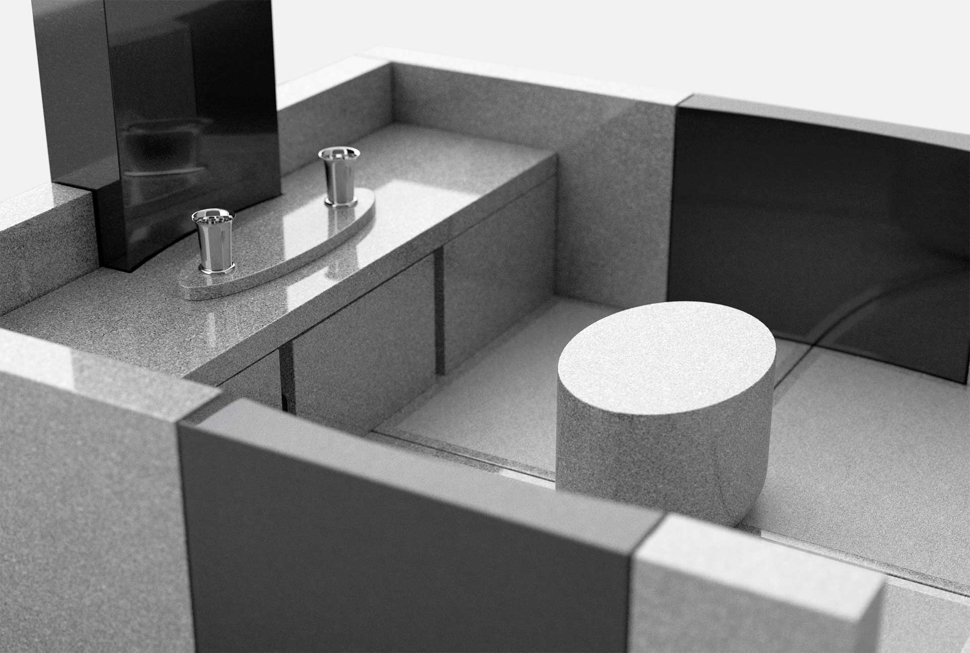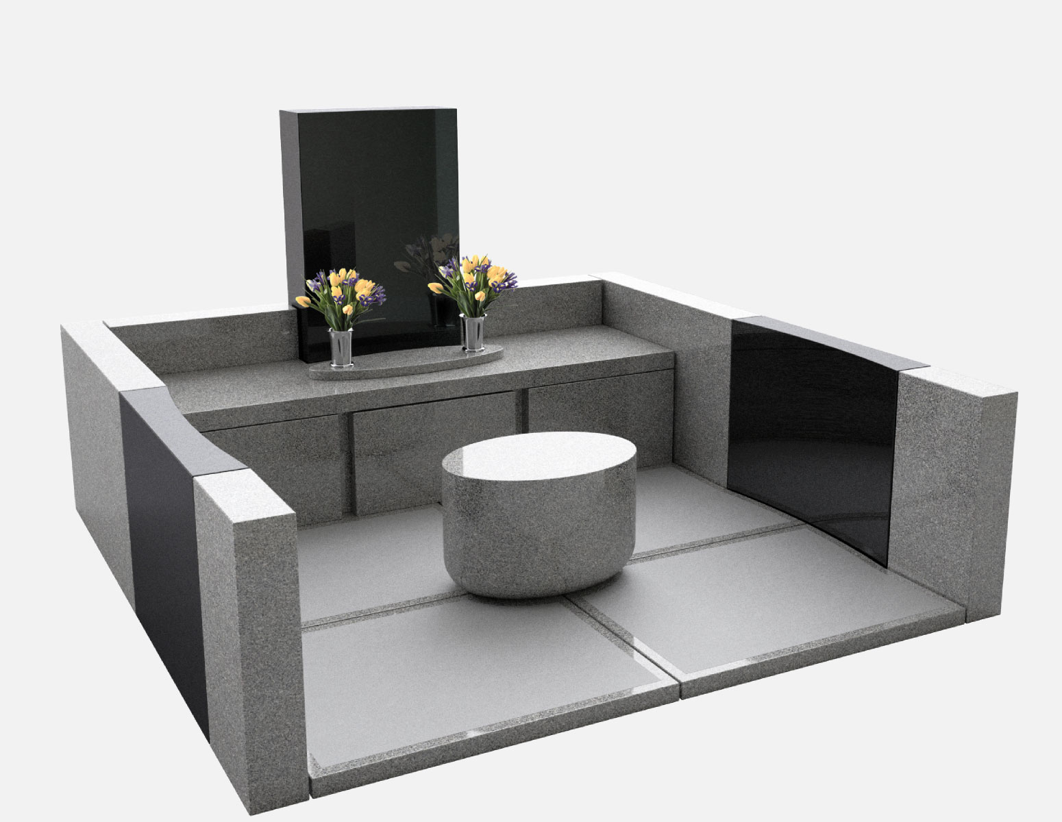 緩やかな曲面がやさしい光を映し出す、想い出に浸るための静謐なる墓石。